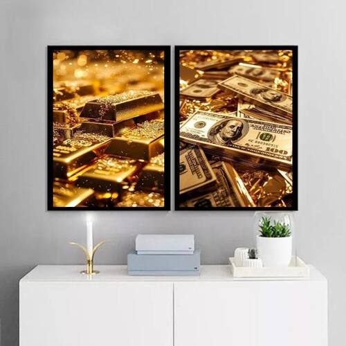 Kit 2 quadros arquétipo dinheiro fortuna 45x34cm - com vidro Cor: moldura preta Informações do produto tire todas as suas dúvidas no descritivo abaixo: decoração para quarto, sala, cozinha, escritório, área gourmet e muito mais. Chega de paredes vazias medidas - cada peça tem 45x34cm a3 . Material do papel - papel fotográfico brilhante de altíssima resolução acabamento - todos os quadros são acompanhados de vidro para proteção da imagem. - moldura em madeira maciça na cor preta ou branca conforme produto escolhido e pendurador . - os quadros são embalados de forma segura com plástico bolha com camada dupla de acordo com o tamanho dos quadros. Garantia - garantia de 3 meses. Meu quadro chegou. Como posso fixá-lo Você precisa apenas de um martelo e um prego, pois os quadros já vão acompanhados de penduradores. Esta é a forma mais indicada. Como posso limpar meu quadro A limpeza é feita como um móvel comum da sua casa. Apenas um pano seco ou espanador são suficientes para tal