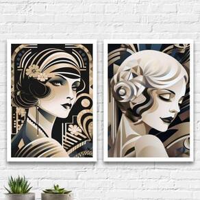 Kit 2 Quadros Mulheres Art Deco 24X18Cm