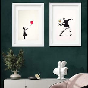 Kit 2 quadros arte banksy - 60x48cm Moldura: madeira preta Informações do produto tire todas as suas dúvidas no descritivo abaixo: decoração para quarto, sala, cozinha, escritório, área gourmet e muito mais. Chega de paredes vazias medidas - cada peça tem 60x48cm . Material do papel - papel fotográfico brilhante de altíssima resolução acabamento - todos os quadros são acompanhados de vidro para proteção da imagem. - moldura em madeira maciça na cor preta ou branca conforme produto escolhido e pendurador. - paspatur branco com 7cm de largura - os quadros são embalados de forma segura com plástico bolha com camada dupla de acordo com o tamanho dos quadros. - de 3 meses. Meu quadro chegou. Como posso fixá-lo Você precisa apenas de um martelo e um prego, pois os quadros já vão acompanhados de penduradores. Esta é a forma mais indicada. Como posso limpar meu quadro A limpeza é feita como um móvel comum da sua casa. Apenas um pano seco ou espanador são suficientes para tal Marca: Não Informado