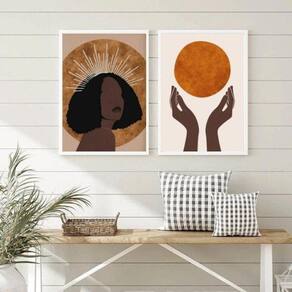 O Kit 2 Quadros Arte Boho Mulher Negra Com Sol 24X18Cm é perfeito para decorar diversos ambientes da sua casa. Com um design boho e uma bela imagem de uma mulher negra com sol, esses quadros são ideais para dar um toque especial ao seu quarto, sala, cozinha, escritório, área gourmet e muito mais.