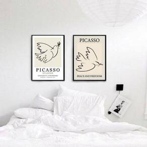 Kit 2 quadros arte picasso pomba da paz 24x18cm Moldura: madeira branca Informações do produto tire todas as suas dúvidas no descritivo abaixo: decoração para quarto, sala, cozinha, escritório, área gourmet e muito mais. Chega de paredes vazias medidas - cada peça tem 24x18cm a5 . Material do papel - papel fotográfico brilhante de altíssima resolução acabamento - todos os quadros são acompanhados de uma película de acetato para proteção da imagem. - os quadros são embalados de forma segura com plástico bolha com camada dupla de acordo com o tamanho dos quadros. Garantia - garantia de 3 meses. Meu quadro chegou. Como posso fixá-lo Você precisa apenas de um martelo e um prego, pois os quadros já vão acompanhados de penduradores. Esta é a forma mais indicada. Caso prefira, você pode utilizar uma fita dupla face neste caso, sugerimos de alta qualidade para evitar que descole e seu quadro caia . Como posso limpar meu quadro A limpeza é feita como um móvel comum da sua casa. Apenas um pano seco ou espanador são suficientes para tal