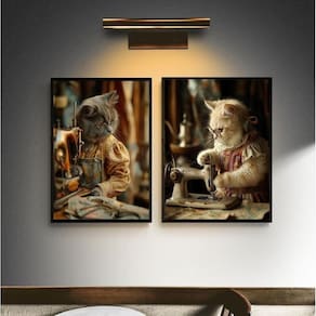 Kit 2 quadros atelier de costura - gatinhas 33x24cm Cor: moldura preta Informações do produto tire todas as suas dúvidas no descritivo abaixo: decoração para quarto, sala, cozinha, escritório, área gourmet e muito mais. Chega de paredes vazias medidas - cada peça tem 33x24cm a4 . Material do papel - papel fotográfico brilhante de altíssima resolução acabamento - todos os quadros são acompanhados de uma película de acetato para proteção da imagem. - os quadros são embalados de forma segura com plástico bolha com camada dupla de acordo com o tamanho dos quadros. Garantia - garantia de 3 meses. Meu quadro chegou. Como posso fixá-lo Você precisa apenas de um martelo e um prego, pois os quadros já vão acompanhados de penduradores. Esta é a forma mais indicada. Caso prefira, você pode utilizar uma fita dupla face neste caso, sugerimos de alta qualidade para evitar que descole e seu quadro caia . Como posso limpar meu quadro A limpeza é feita como um móvel comum da sua casa. Apenas um pano seco ou espanador são suficientes para tal