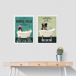Kit 2 quadros banheiro cão border collie 24x18cm Moldura: madeira branca Informações do produto tire todas as suas dúvidas no descritivo abaixo: decoração para quarto, sala, cozinha, escritório, área gourmet e muito mais. Chega de paredes vazias medidas - cada peça tem 24x18cm a5 . Material do papel - papel fotográfico brilhante de altíssima resolução acabamento - todos os quadros são acompanhados de uma película de acetato para proteção da imagem. - os quadros são embalados de forma segura com plástico bolha com camada dupla de acordo com o tamanho dos quadros. Garantia - garantia de 3 meses. Meu quadro chegou. Como posso fixá-lo Você precisa apenas de um martelo e um prego, pois os quadros já vão acompanhados de penduradores. Esta é a forma mais indicada. Caso prefira, você pode utilizar uma fita dupla face neste caso, sugerimos de alta qualidade para evitar que descole e seu quadro caia . Como posso limpar meu quadro A limpeza é feita como um móvel comum da sua casa. Apenas um pano seco ou espanador são suficientes para tal