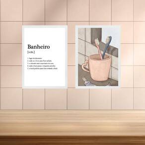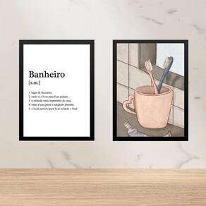 Kit 2 quadros banheiro casal - escovas de dente 24x18cm - com vidro
