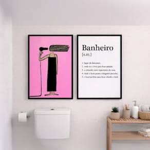 Kit 2 Quadros Banheiro Feminino Secador 45x34cm Mold Preta Vidro