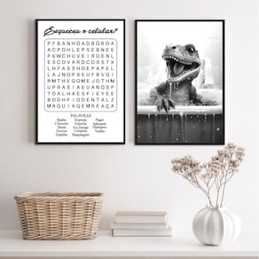 Kit 2 quadros banheiro infantil - dinossauro 33x24cm Moldura: madeira preta Informações do produto tire todas as suas dúvidas no descritivo abaixo: decoração para quarto, sala, cozinha, escritório, área gourmet e muito mais. Chega de paredes vazias medidas - cada peça tem 33x24cm a4 . Material do papel - papel fotográfico brilhante de altíssima resolução acabamento - todos os quadros são acompanhados de uma película de acetato para proteção da imagem. - os quadros são embalados de forma segura com plástico bolha com camada dupla de acordo com o tamanho dos quadros. - de 3 meses. Meu quadro chegou. Como posso fixá-lo Você precisa apenas de um martelo e um prego, pois os quadros já vão acompanhados de penduradores. Esta é a forma mais indicada. Caso prefira, você pode utilizar uma fita dupla face neste caso, sugerimos de alta qualidade para evitar que descole e seu quadro caia . Como posso limpar meu quadro A limpeza é feita como um móvel comum da sua casa. Apenas um pano seco ou espanador são suficientes para tal Marca: Não Informado