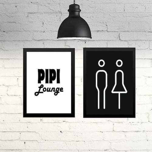 Kit 2 Quadros Banheiro Unissex - Pipi Lounge 45X34Cm