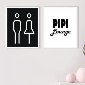 Kit 2 quadros banheiro unissex - pipi lounge 45x34cm