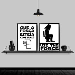 Kit 2 quadros banheiro use the force 33x24cm Moldura: madeira branca Informações do produto tire todas as suas dúvidas no descritivo abaixo: decoração para quarto, sala, cozinha, escritório, área gourmet e muito mais. Chega de paredes vazias medidas - cada peça tem 33x24cm a4 . Material do papel - papel fotográfico brilhante de altíssima resolução acabamento - todos os quadros são acompanhados de uma película de acetato para proteção da imagem. - os quadros são embalados de forma segura com plástico bolha com camada dupla de acordo com o tamanho dos quadros. Garantia - garantia de 3 meses. Meu quadro chegou. Como posso fixá-lo Você precisa apenas de um martelo e um prego, pois os quadros já vão acompanhados de penduradores. Esta é a forma mais indicada. Caso prefira, você pode utilizar uma fita dupla face neste caso, sugerimos de alta qualidade para evitar que descole e seu quadro caia . Como posso limpar meu quadro A limpeza é feita como um móvel comum da sua casa. Apenas um pano seco ou espanador são suficientes para tal