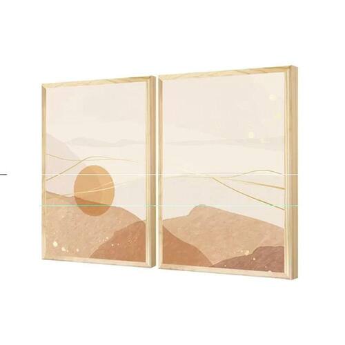 Kit 2 Quadros Bege Paisagem Abstrato Boho Para Sala