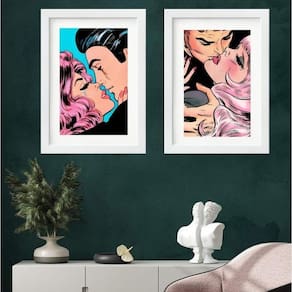 Kit 2 quadros beijo pop arte - 60x48cm Moldura: madeira preta Informações do produto tire todas as suas dúvidas no descritivo abaixo: decoração para quarto, sala, cozinha, escritório, área gourmet e muito mais. Chega de paredes vazias medidas - cada peça tem 60x48cm . Material do papel - papel fotográfico brilhante de altíssima resolução acabamento - todos os quadros são acompanhados de vidro para proteção da imagem. - moldura em madeira maciça na cor preta ou branca conforme produto escolhido e pendurador. - paspatur branco com 7cm de largura - os quadros são embalados de forma segura com plástico bolha com camada dupla de acordo com o tamanho dos quadros. Garantia - garantia de 3 meses. Meu quadro chegou. Como posso fixá-lo Você precisa apenas de um martelo e um prego, pois os quadros já vão acompanhados de penduradores. Esta é a forma mais indicada. Como posso limpar meu quadro A limpeza é feita como um móvel comum da sua casa. Apenas um pano seco ou espanador são suficientes para tal