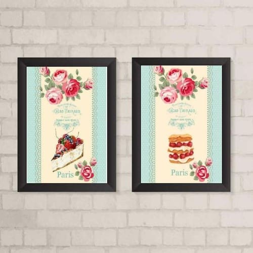 O Kit 2 Quadros Decorativos Bolos Patisserie 33X24Cm é perfeito para decorar seu quarto, sala, cozinha, escritório, área gourmet e muito mais. Com esses quadros, suas paredes não ficarão mais vazias.