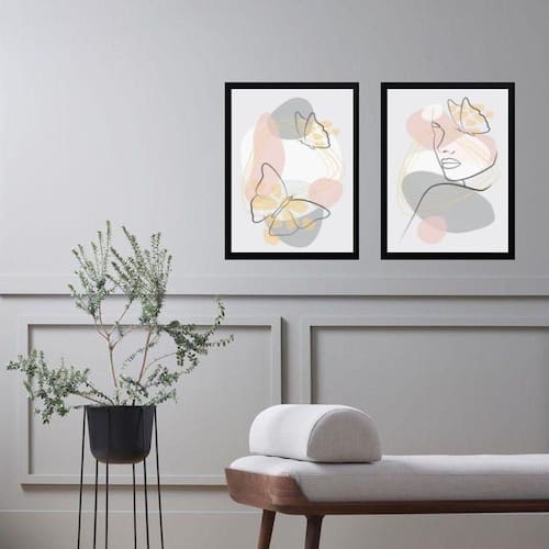 Kit 2 quadros borboletas abstratas rosa e cinza 45x34cm - com vidro Moldura: madeira preta Informações do produto tire todas as suas dúvidas no descritivo abaixo: decoração para quarto, sala, cozinha, escritório, área gourmet e muito mais. Chega de paredes vazias medidas - cada peça tem 45x34cm a3 . Material do papel - papel fotográfico brilhante de altíssima resolução acabamento - todos os quadros são acompanhados de vidro para proteção da imagem. - moldura em madeira maciça na cor preta ou branca conforme produto escolhido e pendurador . - os quadros são embalados de forma segura com plástico bolha com camada dupla de acordo com o tamanho dos quadros. Garantia - garantia de 3 meses. Meu quadro chegou. Como posso fixá-lo Você precisa apenas de um martelo e um prego, pois os quadros já vão acompanhados de penduradores. Esta é a forma mais indicada. Como posso limpar meu quadro A limpeza é feita como um móvel comum da sua casa. Apenas um pano seco ou espanador são suficientes para tal