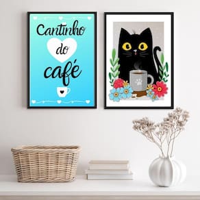 Adquira agora o Kit 2 Quadros Cantinho Do Café Gatinho Floral Azul 33X24Cm e deixe o seu ambiente ainda mais acolhedor e charmoso Ean: 7892904342507