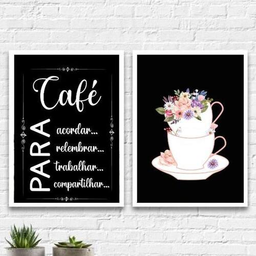 Kit 2 quadros cantinho do café xícaras flores 45x34cm - com vidro Moldura: madeira preta Informações do produto tire todas as suas dúvidas no descritivo abaixo: decoração para quarto, sala, cozinha, escritório, área gourmet e muito mais. Chega de paredes vazias medidas - cada peça tem 45x34cm a3 . Material do papel - papel fotográfico brilhante de altíssima resolução acabamento - todos os quadros são acompanhados de vidro para proteção da imagem. - moldura em madeira maciça na cor preta e pendurador . - os quadros são embalados de forma segura com plástico bolha com camada dupla de acordo com o tamanho dos quadros. Garantia - garantia de 3 meses. Meu quadro chegou. Como posso fixá-lo Você precisa apenas de um martelo e um prego, pois os quadros já vão acompanhados de penduradores. Esta é a forma mais indicada. Como posso limpar meu quadro A limpeza é feita como um móvel comum da sua casa. Apenas um pano seco ou espanador são suficientes para tal Ean: 7896244891176