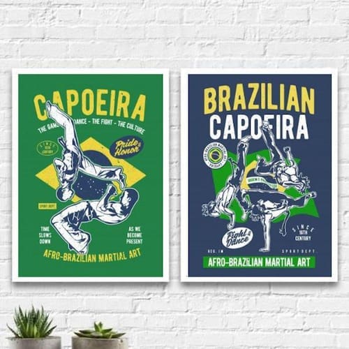 Kit 2 quadros capoeira brasil 24x18cm Moldura: madeira branca