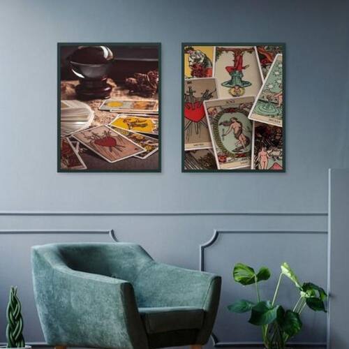 Kit 2 quadros cartas de tarot 45x34cm - com vidro Moldura: madeira branca Informações do produto tire todas as suas dúvidas no descritivo abaixo: decoração para quarto, sala, cozinha, escritório, área gourmet e muito mais. Chega de paredes vazias medidas - cada peça tem 45x34cm a3 . Material do papel - papel fotográfico brilhante de altíssima resolução acabamento - todos os quadros são acompanhados de vidro para proteção da imagem. - moldura em madeira maciça na cor preta ou branca conforme produto escolhido e pendurador . - os quadros são embalados de forma segura com plástico bolha com camada dupla de acordo com o tamanho dos quadros. Garantia - garantia de 3 meses. Meu quadro chegou. Como posso fixá-lo Você precisa apenas de um martelo e um prego, pois os quadros já vão acompanhados de penduradores. Esta é a forma mais indicada. Como posso limpar meu quadro A limpeza é feita como um móvel comum da sua casa. Apenas um pano seco ou espanador são suficientes para tal