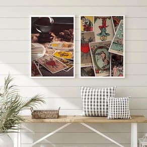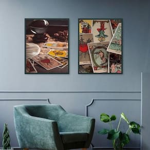 Kit 2 quadros cartas de tarot 45x34cm Moldura: madeira branca Informações do produto tire todas as suas dúvidas no descritivo abaixo: decoração para quarto, sala, cozinha, escritório, área gourmet e muito mais. Chega de paredes vazias. Medidas - cada peça tem 45x34cm a3 . Material do papel - papel fotográfico brilhante de altíssima resolução acabamento - todos os quadros são acompanhados de uma película de acetato para proteção da imagem. - os quadros são embalados de forma segura com plástico bolha com camada dupla de acordo com o tamanho dos quadros. Garantia - garantia de 3 meses. Meu quadro chegou. Como posso fixá-lo Você precisa apenas de um martelo e um prego, pois os quadros já vão acompanhados de penduradores. Esta é a forma mais indicada. Caso prefira, você pode utilizar uma fita dupla face neste caso, sugerimos de alta qualidade para evitar que descole e seu quadro caia . Como posso limpar meu quadro A limpeza é feita como um móvel comum da sua casa. Apenas um pano seco ou espanador são suficientes para tal