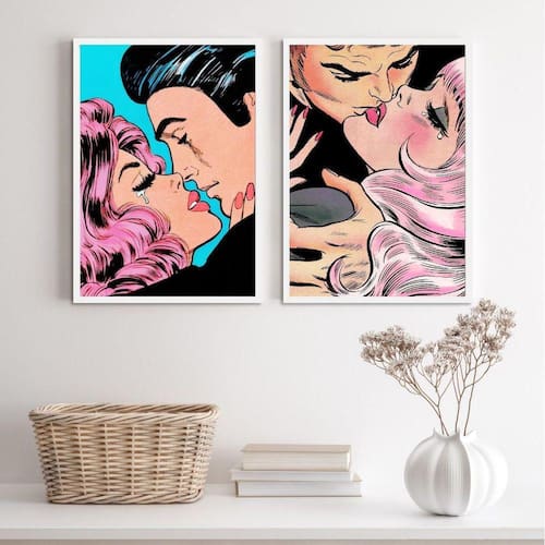 O Kit 2 Quadros Casais Beijo Pop Art 45X34Cm - Com Vidro é perfeito para decorar diversos ambientes, como quarto, sala, cozinha, escritório e área gourmet. Chega de paredes vazias!