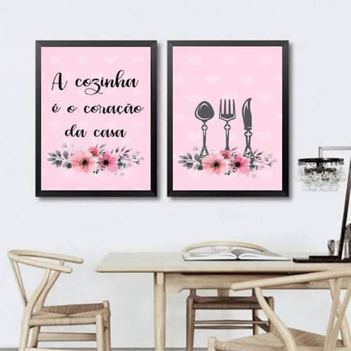 Kit 2 quadros cozinha coração da casa rosa 33x24cm Moldura: madeira preta Informações do produto tire todas as suas dúvidas no descritivo abaixo: decoração para quarto, sala, cozinha, escritório, área gourmet e muito mais. Chega de paredes vazias medidas - cada peça tem 33x24cm a4 . Material do papel - papel fotográfico brilhante de altíssima resolução acabamento - todos os quadros são acompanhados de uma película de acetato para proteção da imagem. - moldura em madeira maciça na cor preta e pendurador móvel que pode ser retirado facilmente caso deseje fixar com fita dupla face. - os quadros são embalados de forma segura com plástico bolha com camada dupla de acordo com o tamanho dos quadros. Marca: Não Informado