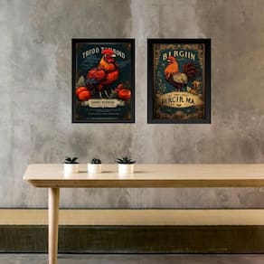 Kit 2 quadros cozinha galo galinha vintage 24x18cm Cor: moldura branca Informações do produto tire todas as suas dúvidas no descritivo abaixo: decoração para quarto, sala, cozinha, escritório, área gourmet e muito mais. Chega de paredes vazias medidas - cada peça tem 24x18cm a5 . Material do papel - papel fotográfico brilhante de altíssima resolução acabamento - todos os quadros são acompanhados de uma película de acetato para proteção da imagem. - os quadros são embalados de forma segura com plástico bolha com camada dupla de acordo com o tamanho dos quadros. Garantia - garantia de 3 meses. Meu quadro chegou. Como posso fixá-lo Você precisa apenas de um martelo e um prego, pois os quadros já vão acompanhados de penduradores. Esta é a forma mais indicada. Caso prefira, você pode utilizar uma fita dupla face neste caso, sugerimos de alta qualidade para evitar que descole e seu quadro caia . Como posso limpar meu quadro A limpeza é feita como um móvel comum da sua casa. Apenas um pano seco ou espanador são suficientes para tal
