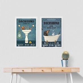 Kit 2 quadros de banheiro cão dachshund 24x18cm Moldura: madeira branca Informações do produto tire todas as suas dúvidas no descritivo abaixo: decoração para quarto, sala, cozinha, escritório, área gourmet e muito mais. Chega de paredes vazias medidas - cada peça tem 24x18cm a5 . Material do papel - papel fotográfico brilhante de altíssima resolução acabamento - todos os quadros são acompanhados de uma película de acetato para proteção da imagem. - os quadros são embalados de forma segura com plástico bolha com camada dupla de acordo com o tamanho dos quadros. Garantia - garantia de 3 meses. Meu quadro chegou. Como posso fixá-lo Você precisa apenas de um martelo e um prego, pois os quadros já vão acompanhados de penduradores. Esta é a forma mais indicada. Caso prefira, você pode utilizar uma fita dupla face neste caso, sugerimos de alta qualidade para evitar que descole e seu quadro caia . Como posso limpar meu quadro A limpeza é feita como um móvel comum da sua casa. Apenas um pano seco ou espanador são suficientes para tal