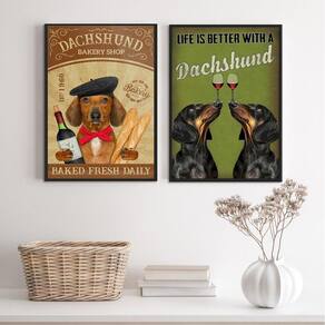 Kit 2 quadros de cozinha cão dachshund 33x24cm - com vidro Moldura: madeira preta Informações do produto tire todas as suas dúvidas no descritivo abaixo: decoração para quarto, sala, cozinha, escritório, área gourmet e muito mais. Chega de paredes vazias medidas - cada peça tem 33x24cm a4 . Material do papel - papel fotográfico brilhante de altíssima resolução acabamento - todos os quadros são acompanhados de vidro para proteção da imagem. - moldura em madeira maciça na cor preta ou branca conforme produto escolhido e pendurador . - os quadros são embalados de forma segura com plástico bolha com camada dupla de acordo com o tamanho dos quadros. Garantia - garantia de 3 meses. Meu quadro chegou. Como posso fixá-lo Você precisa apenas de um martelo e um prego, pois os quadros já vão acompanhados de penduradores. Esta é a forma mais indicada. Como posso limpar meu quadro A limpeza é feita como um móvel comum da sua casa. Apenas um pano seco ou espanador são suficientes para tal