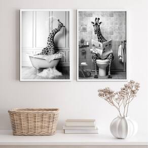 Kit 2 quadros decoração banheiro - girafas 24x18cm Moldura: madeira preta Informações do produto tire todas as suas dúvidas no descritivo abaixo: decoração para quarto, sala, cozinha, escritório, área gourmet e muito mais. Chega de paredes vazias medidas - cada peça tem 24x18cm a5 . Material do papel - papel fotográfico brilhante de altíssima resolução acabamento - todos os quadros são acompanhados de uma película de acetato para proteção da imagem. - os quadros são embalados de forma segura com plástico bolha com camada dupla de acordo com o tamanho dos quadros. - de 3 meses. Meu quadro chegou. Como posso fixá-lo Você precisa apenas de um martelo e um prego, pois os quadros já vão acompanhados de penduradores. Esta é a forma mais indicada. Caso prefira, você pode utilizar uma fita dupla face neste caso, sugerimos de alta qualidade para evitar que descole e seu quadro caia . Como posso limpar meu quadro A limpeza é feita como um móvel comum da sua casa. Apenas um pano seco ou espanador são suficientes para tal Marca: Não Informado