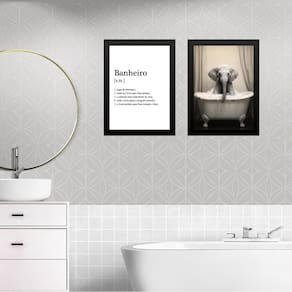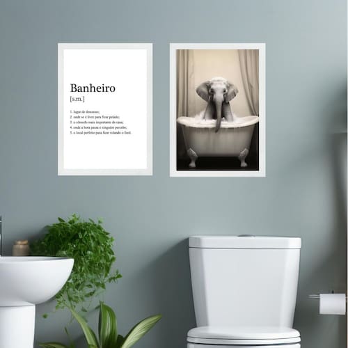 Kit 2 quadros decorar banheiro - elefantinho 24x18cm - com vidro Cor: moldura branca Informações do produto tire todas as suas dúvidas no descritivo abaixo: decoração para quarto, sala, cozinha, escritório, área gourmet e muito mais. Chega de paredes vazias medidas - cada peça tem 24x18cm a5 . Material do papel - papel fotográfico brilhante de altíssima resolução acabamento - todos os quadros são acompanhados de vidro para proteção da imagem. - moldura em madeira maciça na cor preta ou branca conforme produto escolhido e pendurador . - os quadros são embalados de forma segura com plástico bolha com camada dupla de acordo com o tamanho dos quadros. Garantia - garantia de 3 meses. Meu quadro chegou. Como posso fixá-lo Você precisa apenas de um martelo e um prego, pois os quadros já vão acompanhados de penduradores. Esta é a forma mais indicada. Como posso limpar meu quadro A limpeza é feita como um móvel comum da sua casa. Apenas um pano seco ou espanador são suficientes para tal