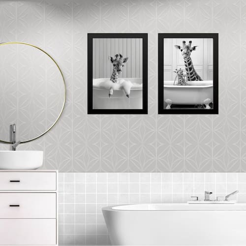 Kit 2 quadros decorar banheiro - girafas 33x24cm Cor: moldura preta Informações do produto tire todas as suas dúvidas no descritivo abaixo: decoração para quarto, sala, cozinha, escritório, área gourmet e muito mais. Chega de paredes vazias medidas - cada peça tem 33x24cm a4 . Material do papel - papel fotográfico brilhante de altíssima resolução acabamento - todos os quadros são acompanhados de uma película de acetato para proteção da imagem. - os quadros são embalados de forma segura com plástico bolha com camada dupla de acordo com o tamanho dos quadros. Garantia - garantia de 3 meses. Meu quadro chegou. Como posso fixá-lo Você precisa apenas de um martelo e um prego, pois os quadros já vão acompanhados de penduradores. Esta é a forma mais indicada. Caso prefira, você pode utilizar uma fita dupla face neste caso, sugerimos de alta qualidade para evitar que descole e seu quadro caia . Como posso limpar meu quadro A limpeza é feita como um móvel comum da sua casa. Apenas um pano seco ou espanador são suficientes para tal