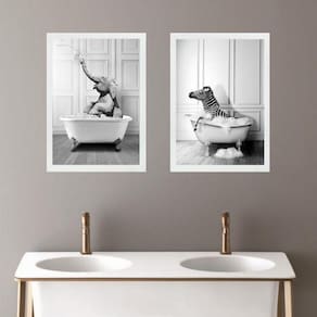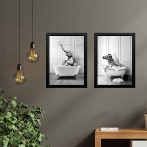 Kit 2 quadros para decorar banheiro - zebra e elefante 24x18cm - com vidro