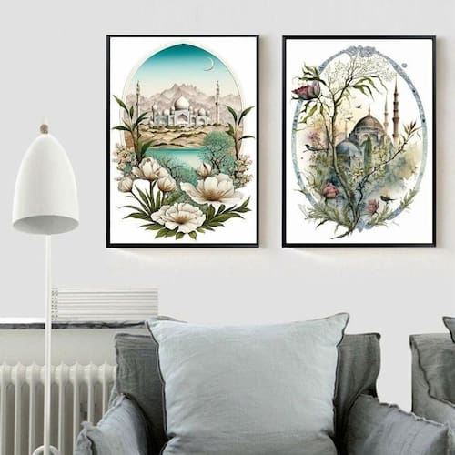 Kit 2 quadros decorativos aquarelas muçulmanas 33x24cm