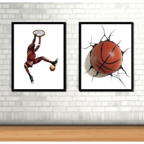 Kit 2 quadros decorativos basquete tridimensional 45x34cm Moldura: madeira preta Informações do produto tire todas as suas dúvidas no descritivo abaixo: decoração para quarto, sala, cozinha, escritório, área gourmet e muito mais. Chega de paredes vazias. Medidas - cada peça tem 45x34cm a3 . Material do papel - papel fotográfico brilhante de altíssima resolução acabamento - todos os quadros são acompanhados de uma película de acetato para proteção da imagem. - os quadros são embalados de forma segura com plástico bolha com camada dupla de acordo com o tamanho dos quadros. Garantia - garantia de 3 meses. Meu quadro chegou. Como posso fixá-lo Você precisa apenas de um martelo e um prego, pois os quadros já vão acompanhados de penduradores. Esta é a forma mais indicada. Caso prefira, você pode utilizar uma fita dupla face neste caso, sugerimos de alta qualidade para evitar que descole e seu quadro caia . Como posso limpar meu quadro A limpeza é feita como um móvel comum da sua casa. Apenas um pano seco ou espanador são suficientes para tal Ean: 7895148010294