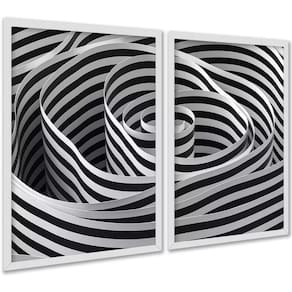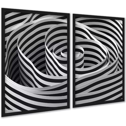 Kit 2 quadros decorativos espiral listras branco preto 33x24cm Cor: moldura preta Informações do produto tire todas as suas dúvidas no descritivo abaixo: decoração para quarto, sala, cozinha, escritório, área gourmet e muito mais. Chega de paredes vazias medidas - cada peça tem 33x24cm a4 . Material do papel - papel fotográfico brilhante de altíssima resolução acabamento - todos os quadros são acompanhados de uma película de acetato para proteção da imagem. - os quadros são embalados de forma segura com plástico bolha com camada dupla de acordo com o tamanho dos quadros. - de 3 meses. Meu quadro chegou. Como posso fixá-lo Você precisa apenas de um martelo e um prego, pois os quadros já vão acompanhados de penduradores. Esta é a forma mais indicada. Caso prefira, você pode utilizar uma fita dupla face neste caso, sugerimos de alta qualidade para evitar que descole e seu quadro caia . Como posso limpar meu quadro A limpeza é feita como um móvel comum da sua casa. Apenas um pano seco ou espanador são suficientes para tal