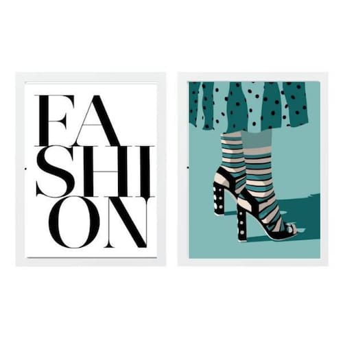 Kit 2 quadros decorativos fashion 45x34cm Tamanho: a3 45 x 34 Acabamento: película de acetato Moldura: madeira branca Informações do produto