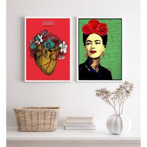 Kit 2 quadros decorativos frida- coração 24x18cm Moldura: madeira branca Informações do produto tire todas as suas dúvidas no descritivo abaixo: decoração para quarto, sala, cozinha, escritório, área gourmet e muito mais. Chega de paredes vazias medidas - cada peça tem 24x18cm a5 . Material do papel - papel fotográfico brilhante de altíssima resolução acabamento - todos os quadros são acompanhados de uma película de acetato para proteção da imagem. - os quadros são embalados de forma segura com plástico bolha com camada dupla de acordo com o tamanho dos quadros. Garantia - garantia de 3 meses. Meu quadro chegou. Como posso fixá-lo Você precisa apenas de um martelo e um prego, pois os quadros já vão acompanhados de penduradores. Esta é a forma mais indicada. Caso prefira, você pode utilizar uma fita dupla face neste caso, sugerimos de alta qualidade para evitar que descole e seu quadro caia . Como posso limpar meu quadro A limpeza é feita como um móvel comum da sua casa. Apenas um pano seco ou espanador são suficientes para tal Ean: 7892090778012