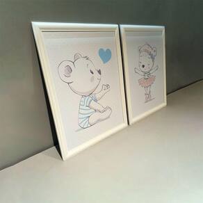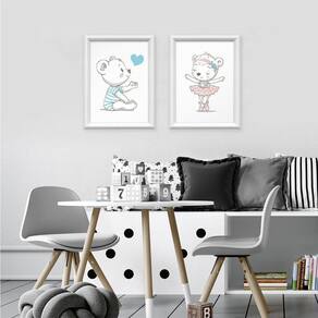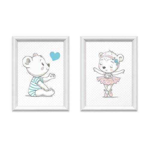 Kit 2 Quadros Decorativos Irmãos Ursinhos 34x44cm