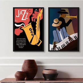 Kit 2 Quadros Decorativos Jazz Cartaz Poster 33X24Cm - Vidro