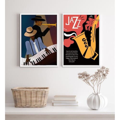Kit 2 quadros decorativos jazz cartaz poster 45x34cm Moldura: madeira branca Informações do produto tire todas as suas dúvidas no descritivo abaixo: decoração para quarto, sala, cozinha, escritório, área gourmet e muito mais. Chega de paredes vazias. Medidas - cada peça tem 45x34cm a3 . Material do papel - papel fotográfico brilhante de altíssima resolução acabamento - todos os quadros são acompanhados de uma película de acetato para proteção da imagem. - os quadros são embalados de forma segura com plástico bolha com camada dupla de acordo com o tamanho dos quadros. Garantia - garantia de 3 meses. Meu quadro chegou. Como posso fixá-lo Você precisa apenas de um martelo e um prego, pois os quadros já vão acompanhados de penduradores. Esta é a forma mais indicada. Caso prefira, você pode utilizar uma fita dupla face neste caso, sugerimos de alta qualidade para evitar que descole e seu quadro caia . Como posso limpar meu quadro A limpeza é feita como um móvel comum da sua casa. Apenas um pano seco ou espanador são suficientes para tal Ean: 7890269052574