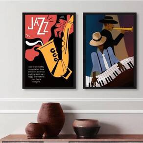 Kit 2 quadros decorativos jazz cartaz poster 45x34cm Moldura: madeira preta Informações do produto tire todas as suas dúvidas no descritivo abaixo: decoração para quarto, sala, cozinha, escritório, área gourmet e muito mais. Chega de paredes vazias. Medidas - cada peça tem 45x34cm a3 . Material do papel - papel fotográfico brilhante de altíssima resolução acabamento - todos os quadros são acompanhados de uma película de acetato para proteção da imagem. - os quadros são embalados de forma segura com plástico bolha com camada dupla de acordo com o tamanho dos quadros. Garantia - garantia de 3 meses. Meu quadro chegou. Como posso fixá-lo Você precisa apenas de um martelo e um prego, pois os quadros já vão acompanhados de penduradores. Esta é a forma mais indicada. Caso prefira, você pode utilizar uma fita dupla face neste caso, sugerimos de alta qualidade para evitar que descole e seu quadro caia . Como posso limpar meu quadro A limpeza é feita como um móvel comum da sua casa. Apenas um pano seco ou espanador são suficientes para tal Ean: 7890028995609