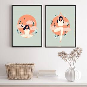 Kit 2 quadros decorativos meditação yoga 24x18cm - com vidro