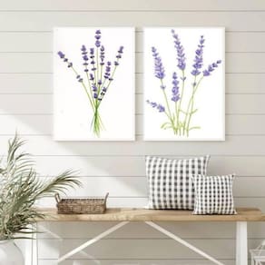 Kit 2 quadros decorativos ramos lavanda 24x18cm - com vidro Moldura: madeira branca Informações do produto tire todas as suas dúvidas no descritivo abaixo: decoração para quarto, sala, cozinha, escritório, área gourmet e muito mais. Chega de paredes vazias medidas - cada peça tem 24x18cm a5 . Material do papel - papel fotográfico brilhante de altíssima resolução acabamento - todos os quadros são acompanhados de vidro para proteção da imagem. - moldura em madeira maciça na cor preta e pendurador . - os quadros são embalados de forma segura com plástico bolha com camada dupla de acordo com o tamanho dos quadros. - de 3 meses. Meu quadro chegou. Como posso fixá-lo Você precisa apenas de um martelo e um prego, pois os quadros já vão acompanhados de penduradores. Esta é a forma mais indicada. Como posso limpar meu quadro A limpeza é feita como um móvel comum da sua casa. Apenas um pano seco ou espanador são suficientes para tal Ean: 7895142259316