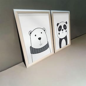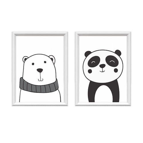 Kit 2 Quadros Decorativos Urso e Panda 34x44cm