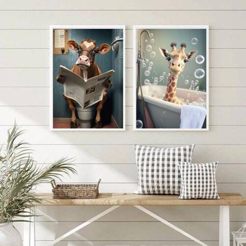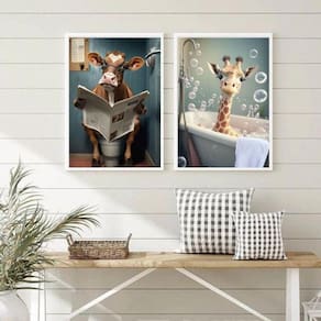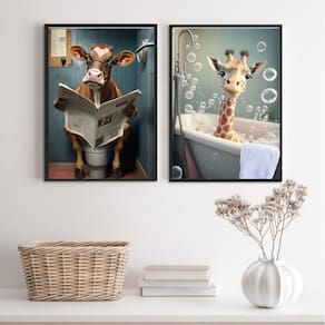 Kit 2 quadros divertidos para banheiro- bichinhos 45x34cm - com vidro
