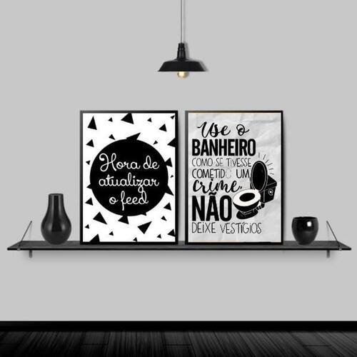 Kit 2 quadros divertidos para banheiro 33x24cm Moldura: madeira preta Informações do produto Decoração para quarto, sala, cozinha, escritório, área gourmet e muito mais. Chega de paredes vazias Medidas - cada peça tem 33x24cm a4 . Material do papel - papel fotográfico brilhante de altíssima resolução Acabamento - todos os quadros são acompanhados de uma película de acetato para proteção da imagem. - Os quadros são embalados de forma segura com plástico bolha com camada dupla de acordo com o tamanho dos quadros. - de 3 meses. Meu quadro chegou. Como posso fixá-lo Você precisa apenas de um martelo e um prego, pois os quadros já vão acompanhados de penduradores. Esta é a forma mais indicada. Caso prefira, você pode utilizar uma fita dupla face neste caso, sugerimos de alta qualidade para evitar que descole e seu quadro caia . Como posso limpar meu quadro A limpeza é feita como um móvel comum da sua casa. Apenas um pano seco ou espanador são suficientes para tal Marca: Não Informado