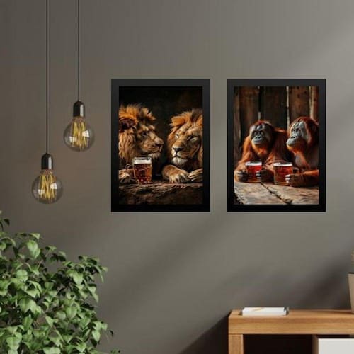 Kit 2 quadros divertidos para bar - animais 45x34cm Moldura: madeira preta Informações do produto tire todas as suas dúvidas no descritivo abaixo: decoração para quarto, sala, cozinha, escritório, área gourmet e muito mais. Chega de paredes vazias. Medidas - cada peça tem 45x34cm a3 . Material do papel - papel fotográfico brilhante de altíssima resolução acabamento - todos os quadros são acompanhados de uma película de acetato para proteção da imagem. - os quadros são embalados de forma segura com plástico bolha com camada dupla de acordo com o tamanho dos quadros. Garantia - garantia de 3 meses. Meu quadro chegou. Como posso fixá-lo Você precisa apenas de um martelo e um prego, pois os quadros já vão acompanhados de penduradores. Esta é a forma mais indicada. Caso prefira, você pode utilizar uma fita dupla face neste caso, sugerimos de alta qualidade para evitar que descole e seu quadro caia . Como posso limpar meu quadro A limpeza é feita como um móvel comum da sua casa. Apenas um pano seco ou espanador são suficientes para tal