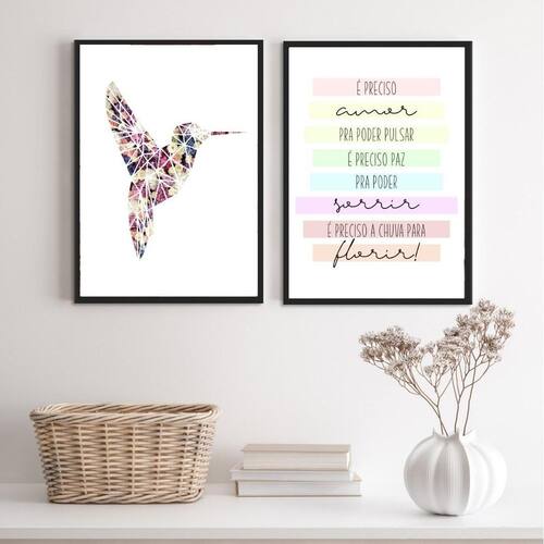 Kit 2 quadros é preciso amor beija-flor 33x24cm Moldura: madeira preta Informações do produto tire todas as suas dúvidas no descritivo abaixo: decoração para quarto, sala, cozinha, escritório, área gourmet e muito mais. Chega de paredes vazias medidas - cada peça tem 33x24cm a4 . Material do papel - papel fotográfico brilhante de altíssima resolução acabamento - todos os quadros são acompanhados de uma película de acetato para proteção da imagem. - os quadros são embalados de forma segura com plástico bolha com camada dupla de acordo com o tamanho dos quadros. - de 3 meses. Meu quadro chegou. Como posso fixá-lo Você precisa apenas de um martelo e um prego, pois os quadros já vão acompanhados de penduradores. Esta é a forma mais indicada. Caso prefira, você pode utilizar uma fita dupla face neste caso, sugerimos de alta qualidade para evitar que descole e seu quadro caia . Como posso limpar meu quadro A limpeza é feita como um móvel comum da sua casa. Apenas um pano seco ou espanador são suficientes para tal Marca: Não Informado