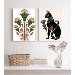 Kit 2 quadros egípcios gato bastet e flor de lotus 33x24cm Moldura: madeira branca Informações do produto tire todas as suas dúvidas no descritivo abaixo: decoração para quarto, sala, cozinha, escritório, área gourmet e muito mais. Chega de paredes vazias medidas - cada peça tem 33x24cm a4 . Material do papel - papel fotográfico brilhante de altíssima resolução acabamento - todos os quadros são acompanhados de uma película de acetato para proteção da imagem. - os quadros são embalados de forma segura com plástico bolha com camada dupla de acordo com o tamanho dos quadros. Garantia - garantia de 3 meses. Meu quadro chegou. Como posso fixá-lo Você precisa apenas de um martelo e um prego, pois os quadros já vão acompanhados de penduradores. Esta é a forma mais indicada. Caso prefira, você pode utilizar uma fita dupla face neste caso, sugerimos de alta qualidade para evitar que descole e seu quadro caia . Como posso limpar meu quadro A limpeza é feita como um móvel comum da sua casa. Apenas um pano seco ou espanador são suficientes para tal