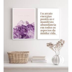 Kit 2 quadros energias positivas- cristais abundância 24x18cm - com vidro Moldura: madeira preta Informações do produto tire todas as suas dúvidas no descritivo abaixo: decoração para quarto, sala, cozinha, escritório, área gourmet e muito mais. Chega de paredes vazias medidas - cada peça tem 24x18cm a5 . Material do papel - papel fotográfico brilhante de altíssima resolução acabamento - todos os quadros são acompanhados de vidro para proteção da imagem. - moldura em madeira maciça na cor preta ou branca conforme produto escolhido e pendurador . - os quadros são embalados de forma segura com plástico bolha com camada dupla de acordo com o tamanho dos quadros. Garantia - garantia de 3 meses. Meu quadro chegou. Como posso fixá-lo Você precisa apenas de um martelo e um prego, pois os quadros já vão acompanhados de penduradores. Esta é a forma mais indicada. Como posso limpar meu quadro A limpeza é feita como um móvel comum da sua casa. Apenas um pano seco ou espanador são suficientes para tal Ean: 7899710592966