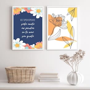 Compre o Kit 2 Quadros Florais Hooponopono 24X18Cm e deixe seu ambiente ainda mais bonito e inspirador. Não perca essa oportunidade de transformar suas paredes vazias em verdadeiras obras de arte. Ean: 7890022544667